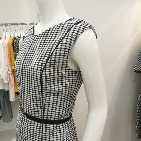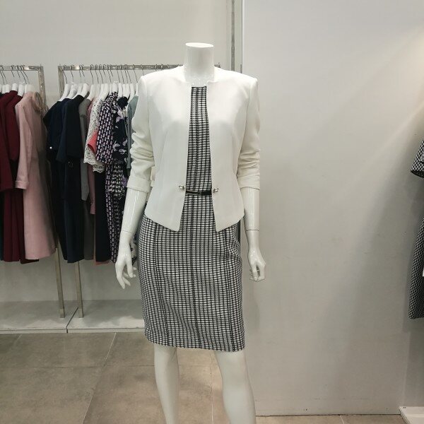 시원한 소재의 슬림한 원피스이다.자켓을 걸치면 세련된 스타일의정장으로 고급스럽게 연출 할 수 있다.