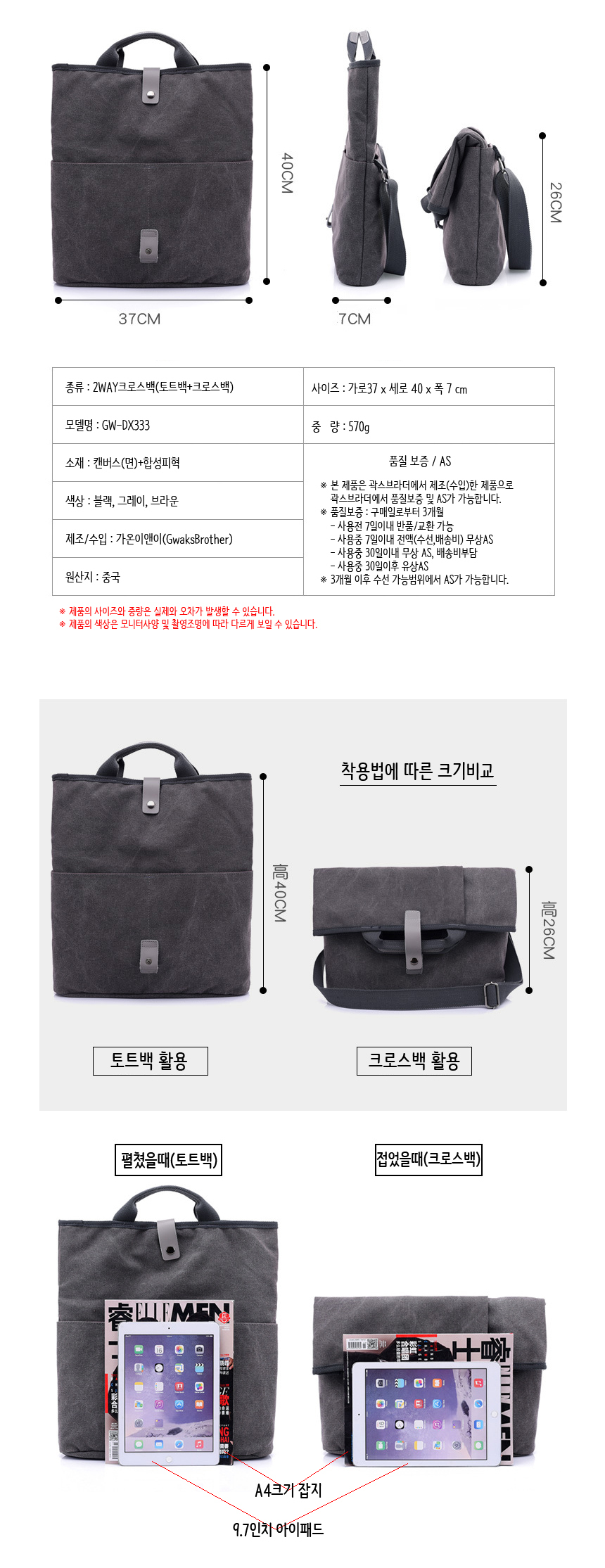 Tote and Cross Bag GW-DX333 Folding Back Men's Canvas