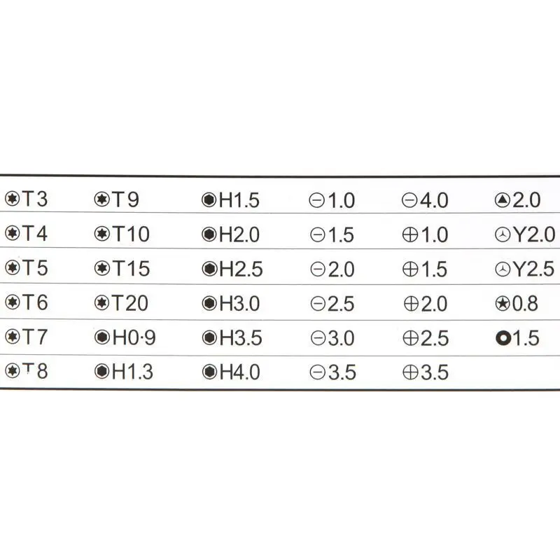 7 * Straight screw driver: 1.0, 1.5, 2.0, 2.5, 3.0, 3.5, 4.0