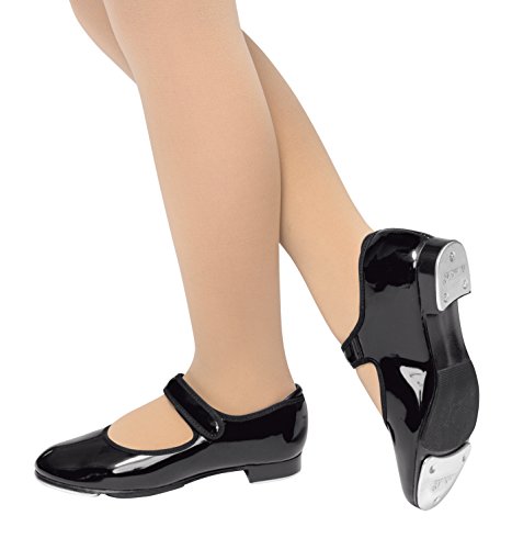 Product Description "Mary Jane" style tap shoe features a secure Velcro closure, a rubber sole pad for traction and stability, screw-in heel taps, a padded sole for comfort, and a padded heel collar to help prevent blisters and injuries to the Achilles tendon. The black patent features a PVC upper while the tan features a matte PU upper. 0