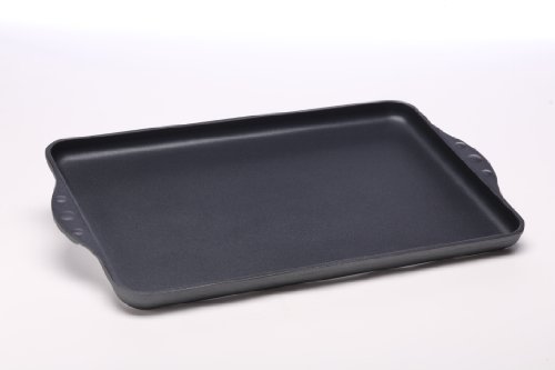 Turn your stove into a full-size indoor grill. The Swiss Diamond double-burner grill is a fantastic alternative to messy, weather-dependent outdoor grills. Its 43x28 cm (17” x 11”) provides ample room to cook bacon, sausage, grilled meats, vegetables and more. As a final step, simply wash with hot soapy water for speedy clean-up with no scrubbing. The cast aluminum construction is guaranteed to prevent warping, keeping your grill perfectly flat while it bridges two stove burners. Used by discerning home chefs around the world, Swiss Diamond’s PFOA-free cookware features unsurpassed nonstick performance for healthy cooking and easy clean-up. The patented nonstick coating, reinforced with real diamond particles, allows oil-free cooking and cleans up with just warm soapy water. No more scrubbing and soaking! Swiss Diamond’s patented nonstick coating is reinforced with real diamonds for excellent durability and resilience. Why diamonds? Three reasons: they are durable, they are naturally nonstick, and they conduct heat better than any metal. A perfect combination for a lifetime of cooking excellence. Swiss quality is visible in every aspect of Swiss Diamond cookware. Heavy-duty cast aluminum will never warp, while the perfectly flat base distributes heat evenly and will not tip or spin. The rivet-free interior prevents unsightly food build-up that can lead to bacterial growth. The ergonomic handle, designed for comfort and balance, stays cool on the stovetop. All Swiss Diamond products are oven-safe up to 500 degrees F (260 degrees C) and suitable for use on gas and electric cooktops – induction series sold separately. Made in Switzerland with an eco-friendly production process.Feature