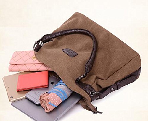 -. Feature : The tote bag is made of Canvas; top-handle length: 6.7 inch / The canvas handbag can hold your ipad, wallet, purse, cellphone, books, umbrella and other daily stuff / It includes 1*rear zipper pocket; 1*main pocket; 2* interior open pocket for cellphone and cards; 1*interior zipper pocket / The casual hobo bag is all match for your dress, can be carried in various occasions, such as shopping, dating, working, college and so on / Approx Size: 13.78 in(L)X 5.12 in(W)X 9.84 in(H); 3 carry options: Tote, single shoulder, and crossbody
