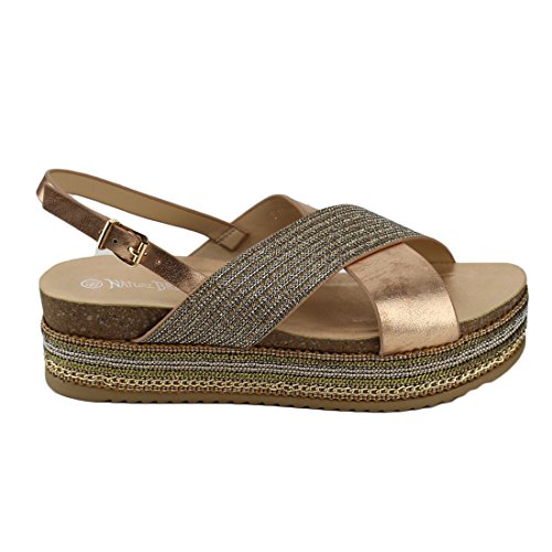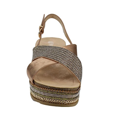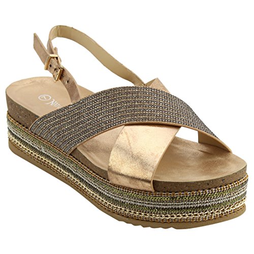 Nature Breeze EM19 Women's Criss-Cross Slingback Chains Beaded Platform Sandals
