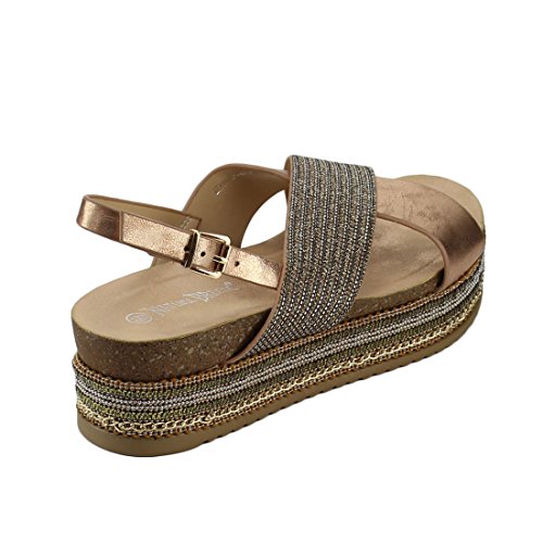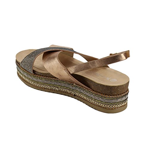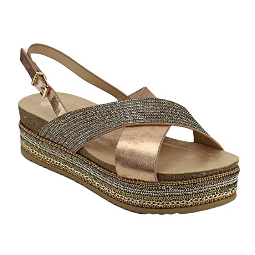Product DescriptionKeep those feet in great style in these Sandal! Featuring a slingback design with adjustable buckle strap for an easy fit, a criss cross design, a braid,chains,sequins,beaded trim platform and a lightly cushion footbed.0