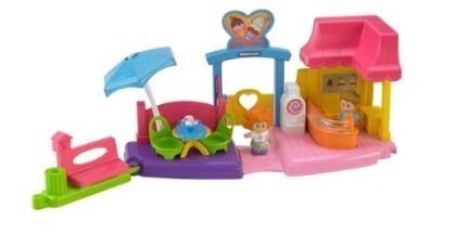 - Includes shop with Sofie & Shopkeeper figures, tray of ice cream, umbrella table with 2 chairs and park bench fence piece
