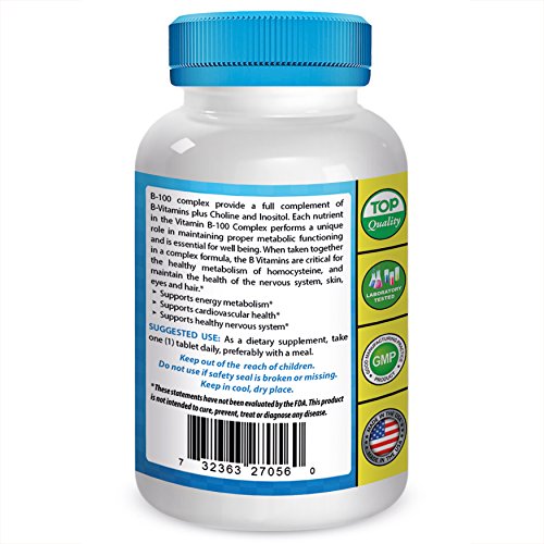 -. Feature : B vitamins function as cofactors for enzymes essential to healthy cell function and energy production* / Supports healthy nervous system* / Vitamin B1 (thiamin) supports proper functioning of the nervous system* - Vitamin B2 (riboflavin) and vitamin B5 (pantothenic acid) support healthy metabolism* - Vitamin B3 (niacin) supports the proper functioning of skin an nerves, and it aids in digestion* / Vitamin B6 is involved in protein and red blood cell metabolism, and it supports the function of the nervous and immune systems* - Vitamin B12 works with antioxidant vitamins to minimize damage to body cell walls, and it helps to maintain healthy nerve cells* - Folic acid helps keep homocysteine levels within the normal range, as research shows that too much homocysteine in the blood may be detrimental to good health* / Biotin supports formation of fatty acids and glucose, which are broken down in the body for energy* - Choline is a key structural component of cellular membranes* - Inositol supports mental health and stable, even moods*