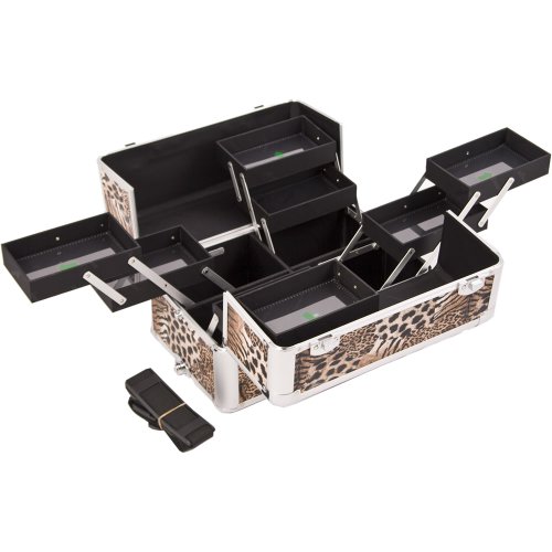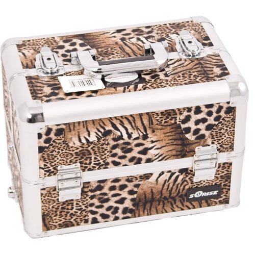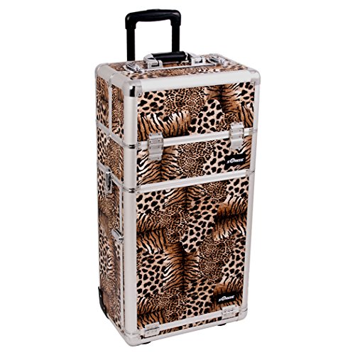 Sunrise Makeup Case on Wheels 2 in 1 Professional Artist I3663, 8 Trays and 3 Large Drawers, Locking with Mirror and Shoulder Strap, Brown Leopard