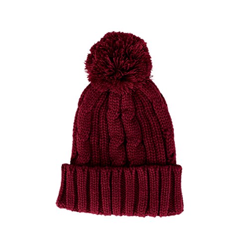 San Diego Hat Company Women's Solid Cable Knit Beanie With Cuff Pom