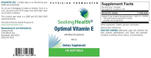 Studio : USA Publisher : USA Binding : Health and Beauty Product Description Optimal Vitamin E by Seeking Health provides 400 IU of 100% natural d-alpha tocopherol, the most active and most widely studied form of vitamin E. It is complemented by a high content of gamma-tocopherol and other natural mixed tocopherols for synergistic activity. Vitamin E is an important fat-soluble antioxidant nutrient that plays a key role in many functions throughout the body. It may help support healthy immune function while providing support against free radical damage to cell membranes.* Free radicals are unstable molecules formed in the body as by-products of metabolism and exposure to environmental factors, including cigarette smoke and ultraviolet light. Vitamin E may play a role in the body's healthy antioxidant defense system, which is responsible for intercepting free radicals, stabilizing and protecting cell membranes and tissues sensitive to oxidation, such as the eyes, lungs, arteries, and skin.* Optimal Vitamin E contains all four natural tocopherol forms to deliver a broad spectrum of benefits throughout the body. Although Optimal Vitamin E is derived from highly refined soy oil, all soy protein allergens are removed using an extensive purification process for maximum tolerance by those sensitive to soy.* 0 |