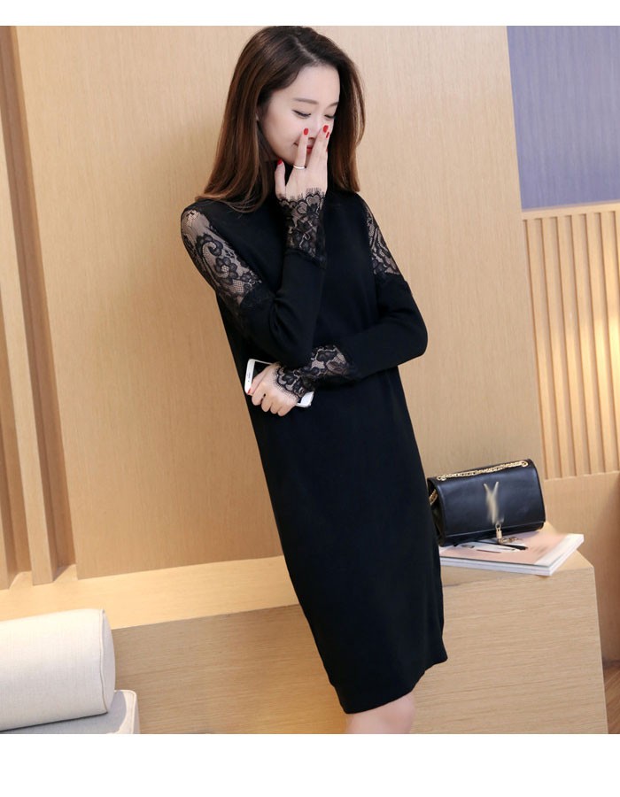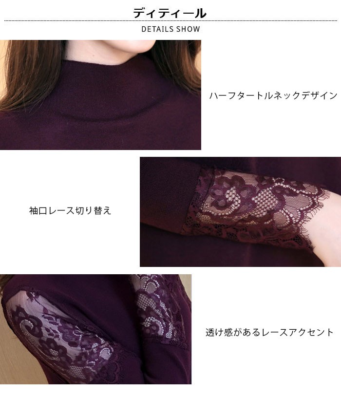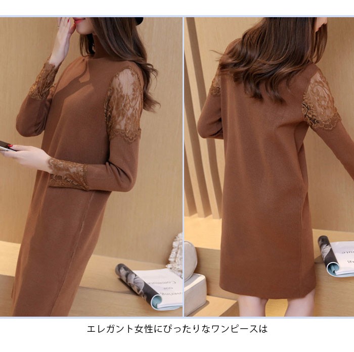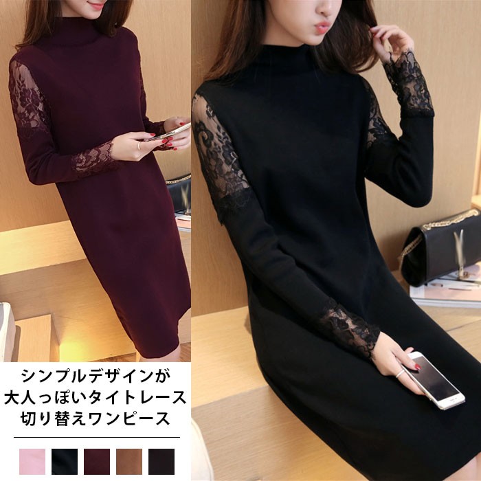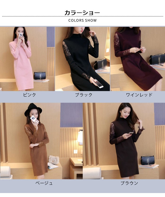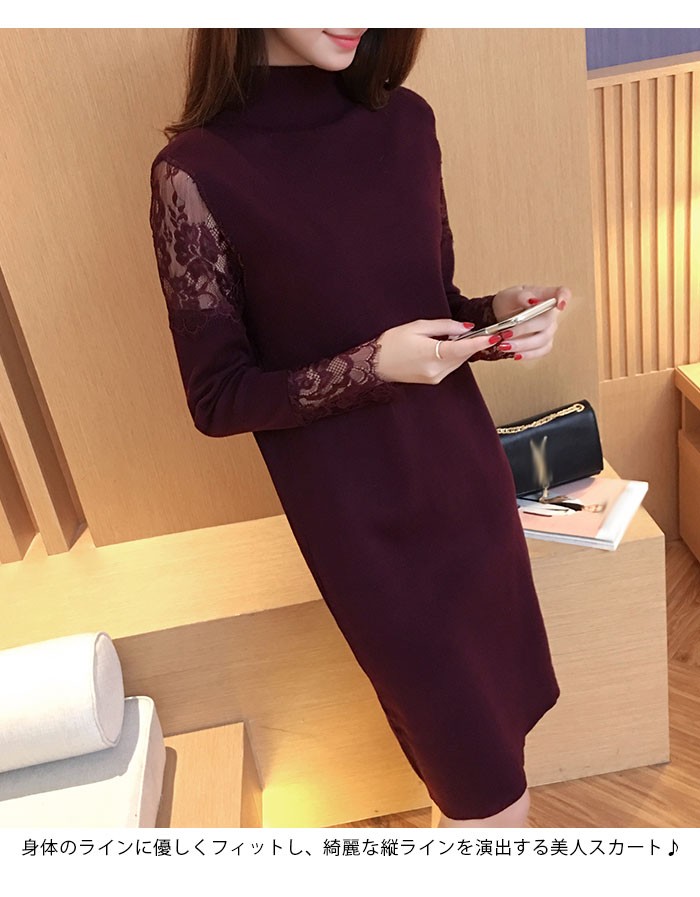 | 商品名 | レース切り替えワンピース ニットワンピース インナーワンピース レディース 長袖 無地 膝丈 レース付き 体型カーパー 2017秋新作 |