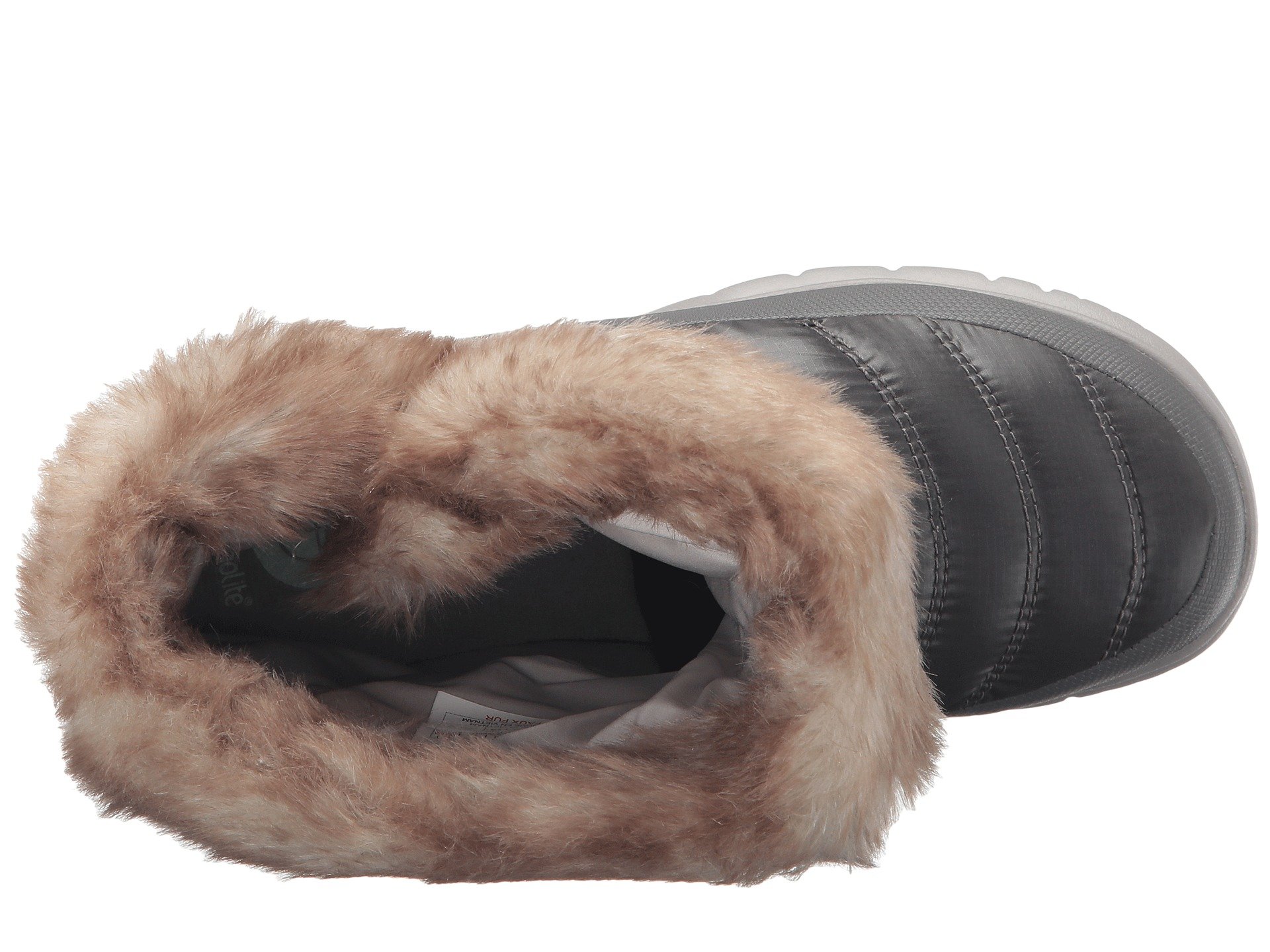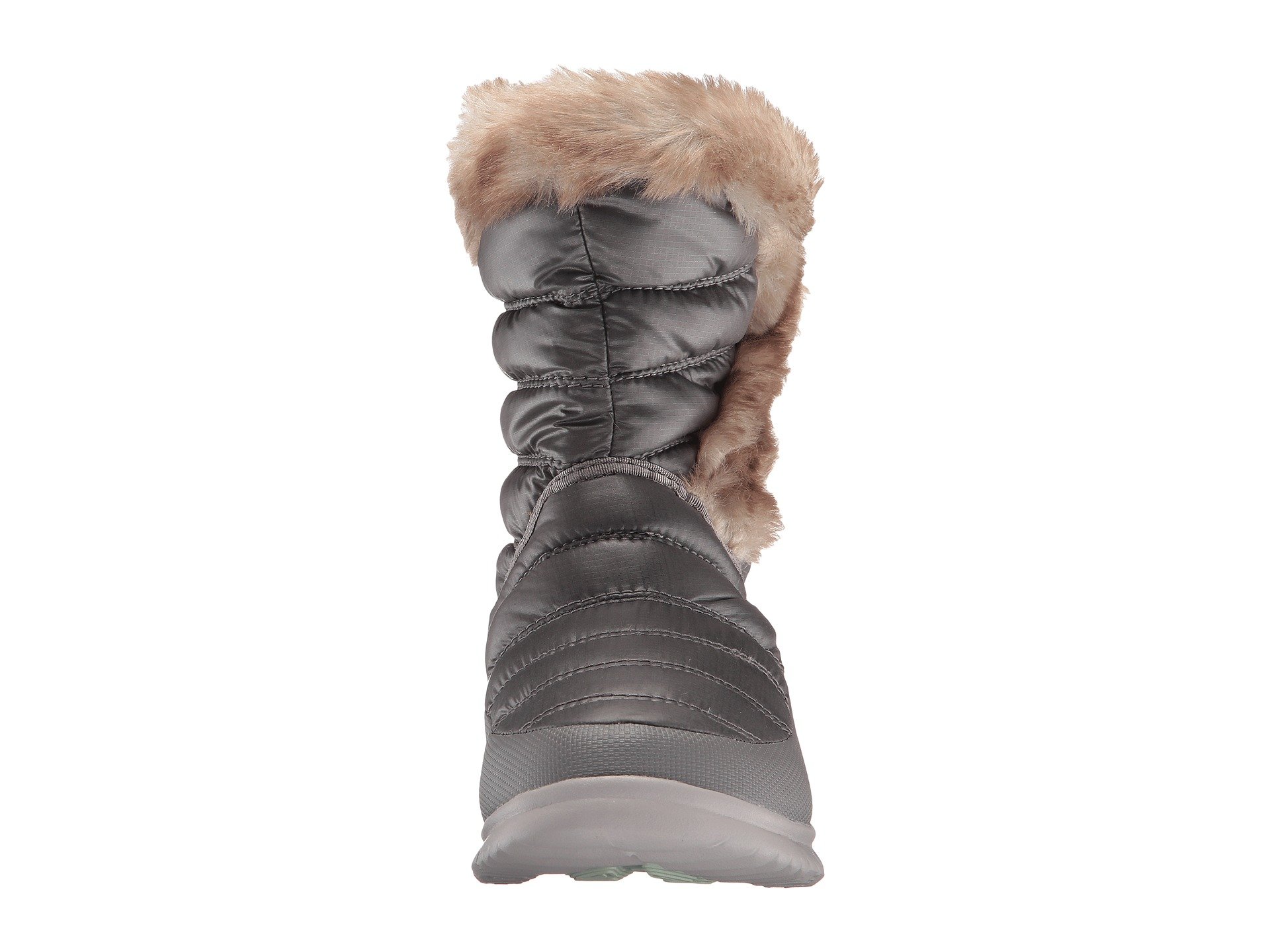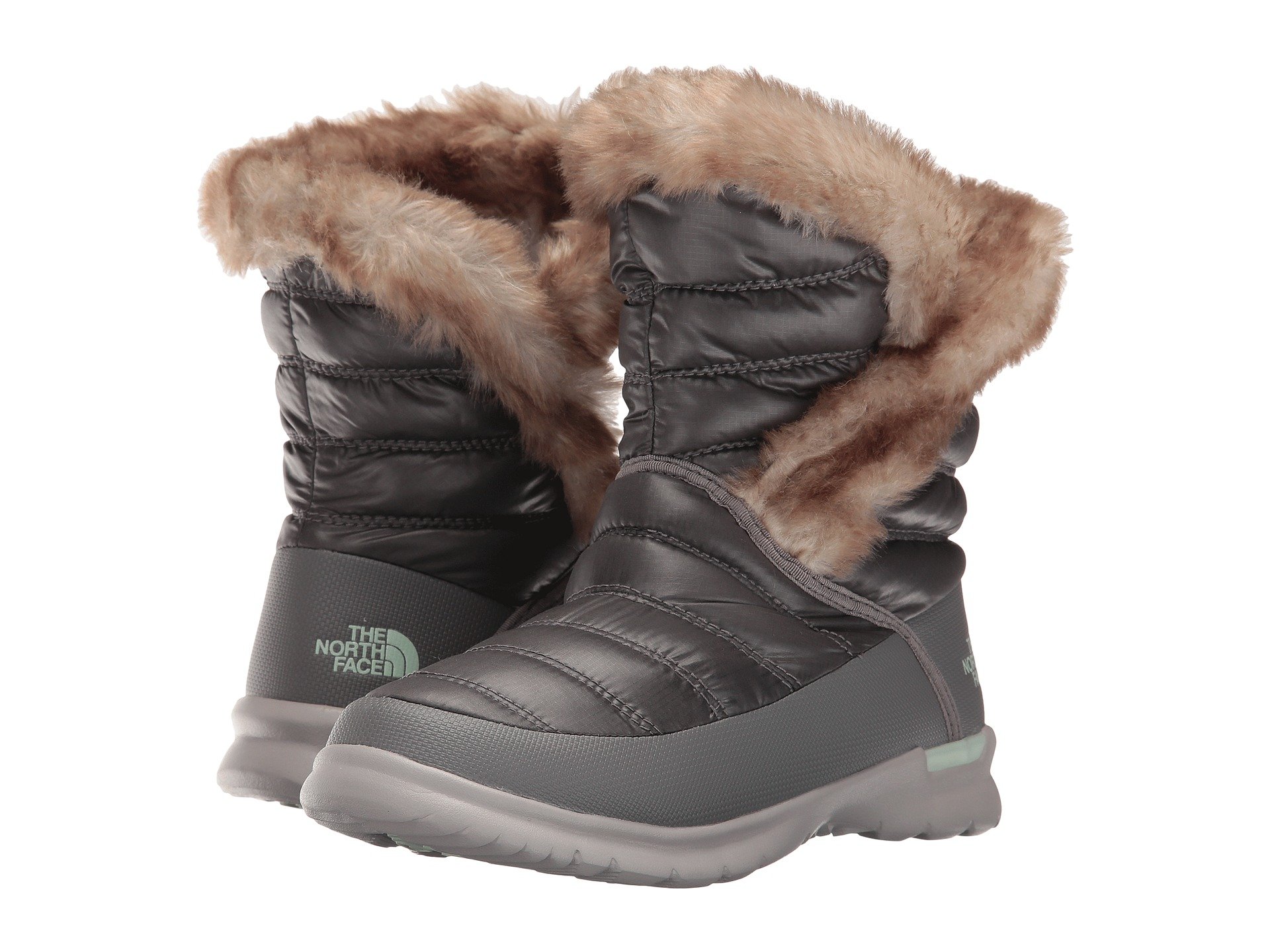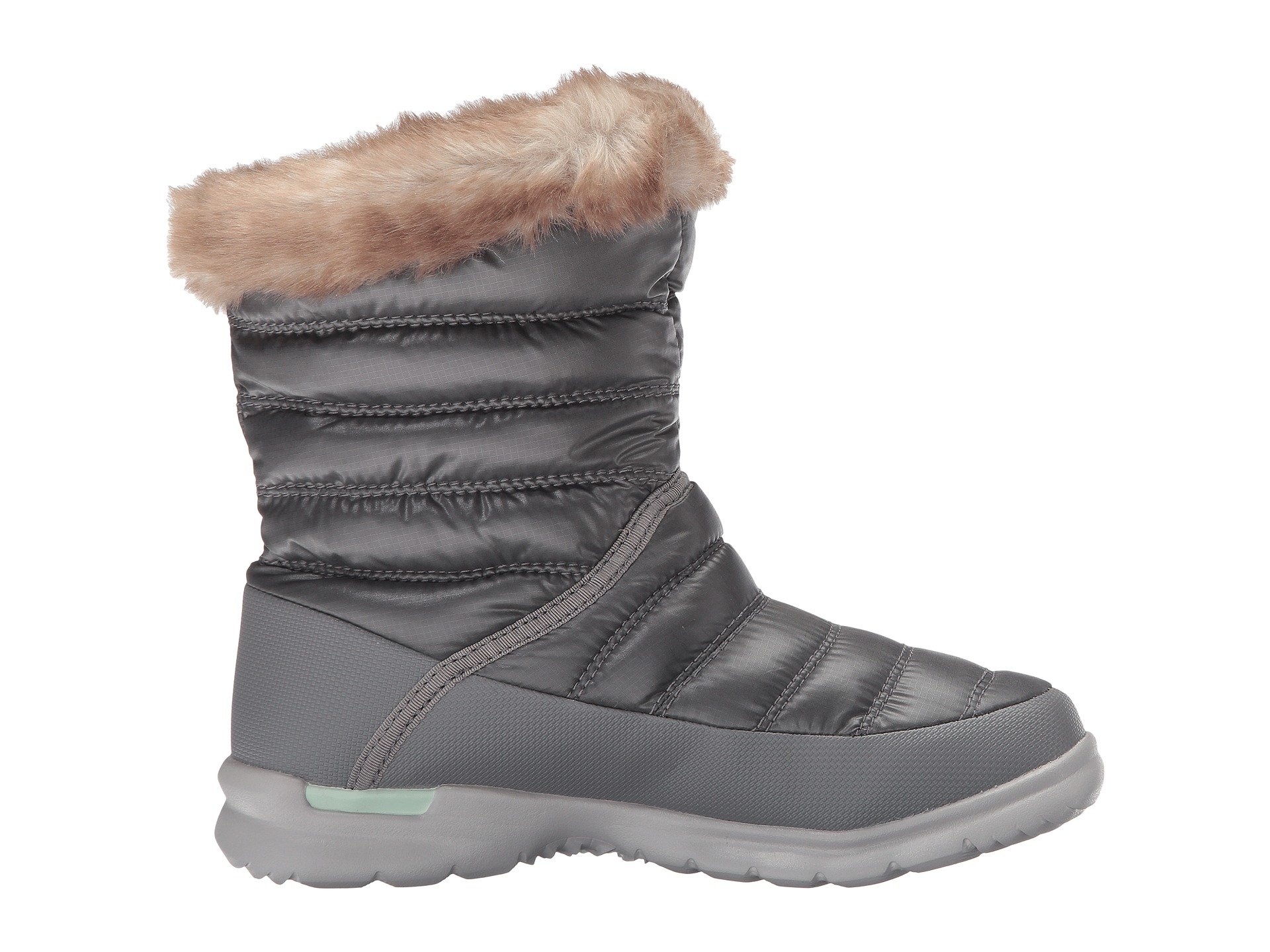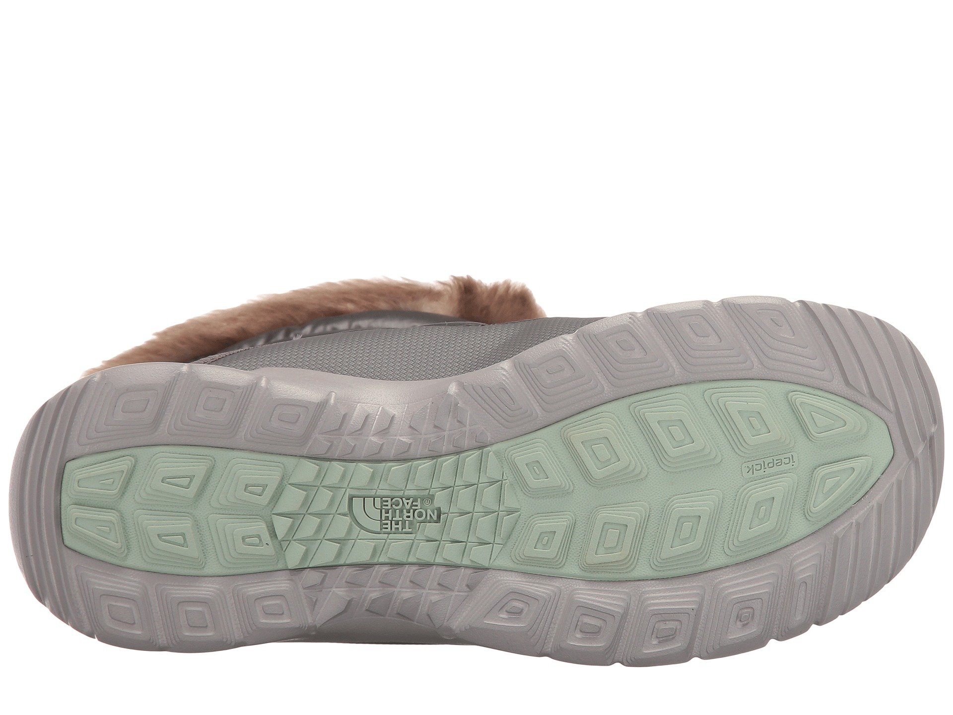 | Product Information SKU: #8711472Please note that this style is either discontinued and/or from a previous season.Your cold-weather commute just got a little better with the toasty The North Face? ThermoBall™ Microbaffle Bootie II.Pull-on design.Water-resistant, 100% recycled P.E.T. ripstop nylon uppers. Protective synthetic mudguard.Plush faux fur collar. ThermoBall™ powered by PrimaLoft insulation in the collar mimics down clusters, trapping heat in small air pockets to retain warmth in wet, cold conditions. OrthoLite? ReBound footbed. Injection-molded EVA outsole with temperature-sensitive IcePick? lugs for exceptional traction in cold-weather conditions. Imported. Product measurements were taken using size 9, width B - Medium. Please note that measurements may vary by size.Measurements: Heel Height: 1 in Weight: 12 oz Shaft: 7 in Platform Height: 1?2 in |