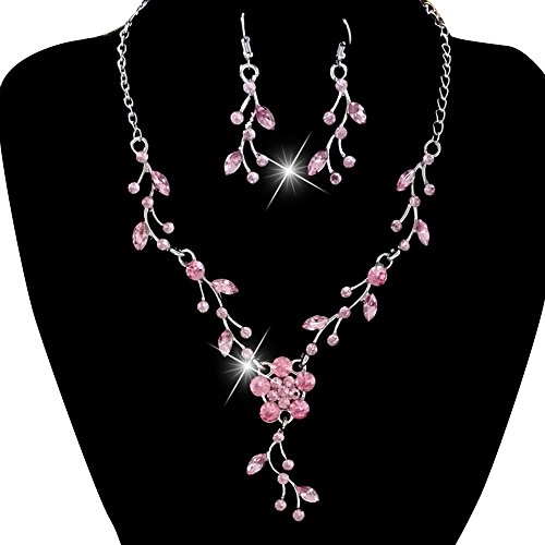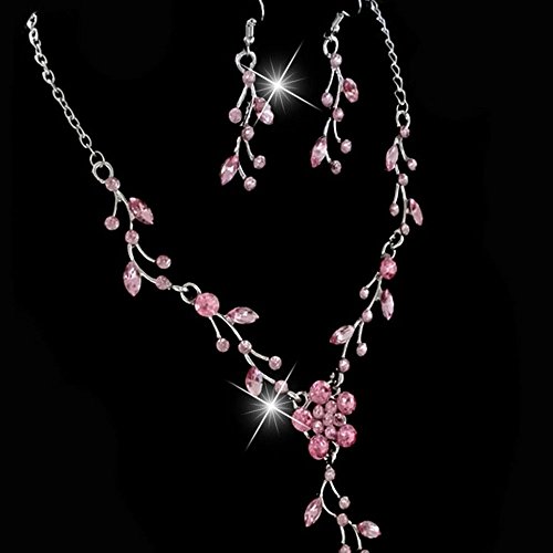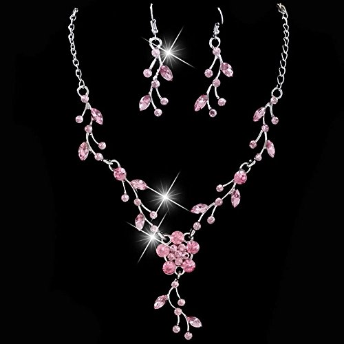 (Litetao)/Accessories Supplies/Audio Video Accessories/DIRECT FROM USA/Litetao Women New Fashion Charm Prom Jewelry Crystal Rhinestone Necklace Earring Set (Pink)