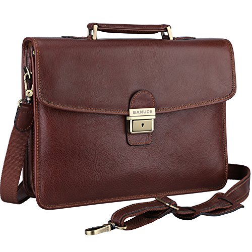 -. Brand : Banuce -. ClothingSize : onesize -. Color : Brown -. Department : mens -. EAN : 0605244329469 -. Feature : Full grain cowhide leather,durable cotton Stripe Lining / Half flap front with front lock closure design / Laptop compartment for HP 14" / Lenovo 14",additonal detachable and adjustable shoulder strap. / Used as briefcase, school bag, messenger bag etc.It's suitable for every business occasions / Size: 15 x 2.25 x 11.5 inch(38 x 5.7 x 29 cm); Net weight: 1.5 kg. -. Model : RTRPOFYBM002-BN -. ProductGroup : Apparel -. ProductTypeName : LAGE -. Size : onesize -. Title : Banuce Men's Briefcase Full Grain Cowhide Leather Business 14" Tote Laptop Shoulder Messenger Bag -. UPC : 605244329469