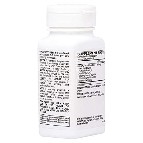 -. Binding : Health and Beauty -. Brand : Great HealthWorks -. EAN : 0868663000016 -. Feature : Powerful omega-3 joint supplement with a patented complex of 30 fatty acids including DHA and EPA / Supported by over 30 years of clinical research for relief from joint pain due to inflammation / Promotes natural joint pain relief - Omega XL / Relieves joint pain due to inflammation -. IsAdultProduct : 0 -. Label : Great HealthWorks -. LegalDisclaimer : *These statements have not been evaluated by the Food and Drug Administration. This product is not intended to diagnose, treat, cure, or prevent disease. -. Manufacturer : Great HealthWorks -. MPN : 868663000016 -. PackageQuantity : 1 -. PartNumber : 868663000016 -. ProductGroup : Health and Beauty -. ProductTypeName : HEALTH_PERSONAL_CARE -. Publisher : Great HealthWorks -. Studio : Great HealthWorks -. Title : Omega XL Omega-3 Joint Health Supplement with 30 Essential Fatty Acids, 120 Capsules -. UPC : 868663000016