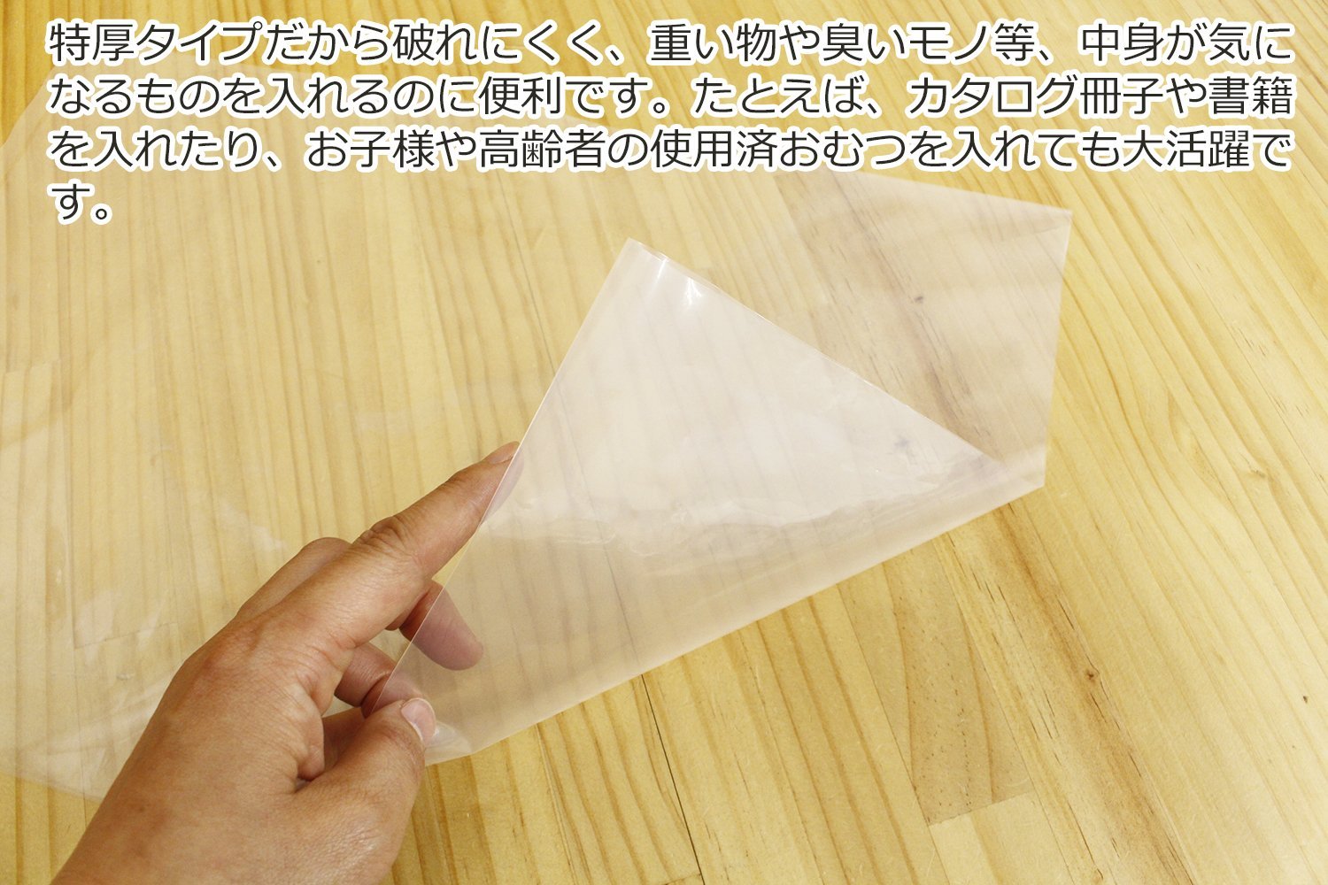 Because it is thick and transparent, I think that it is best for protecting important things other than food (boxes of figures, for example). Although it is big enough, you can also pack larger ones if you cut it and use it. It was a good product. There was only garbage bag for poly when it was larger than this size.