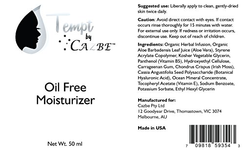 -. Binding : Misc. -. Brand : Tempt by Cazbe -. Color : White -. EAN : 0709818593543 -. Feature : NON-GREASY MOISTURIZER lightweight with soft, silky texture that glides on smoothly and absorbs quickly. Won't irritate sensitive skin or clog pores. Provides deep hydration without aggravating acne or other skin conditions / OIL-FREE MOISTURIZER contains skin quenching ingredients Aloe, Shea Butter, Cocoa Butter, D-Panthenol, Cucumber Extract, Rosemary Extract, and Green Tea Extract. Natural mild scent and refreshing to skin / Our DAILY MOISTURIZERS are specifically formulated for chronically dry skin. Produced with Oleosome technology which uses fewer filters resulting in LESS IRRITATION and IMMEDIATE HYDRATION benefits to your skin. Formula REVITALIZES and ENERGIZES SKIN / Balanced FACIAL MOISTURIZER, light but completely hydrates COMBINATION SKIN without leaving any heavy or greasy feel behind. REDUCES DRYNESS and roughness in acne prescription treated skin. Paraben-free and fragrance-free / Non-irritating skin care that is safe for all skin types. Locks in moisture and leaves your skin soft, radiant and youthful. Works for both MEN and WOMEN. Comes in convenient airless pump bottle for product control and protection -. Label : Cazbe -. Manufacturer : Cazbe -. MPN : TBC 1 -. PackageQuantity : 1 -. PartNumber : TBC 1 -. ProductGroup : Health and Beauty -. ProductTypeName : BEAUTY -. Publisher : Cazbe -. Studio : Cazbe -. Title : Moisturizer Cream - Face Hand & Body Lotion For Men & Women. Tempt by Cazbe, the Best Daily Facial Moisturizers & Face Creams For Moisturizing Normal Dry Acne Prone Oily & Sensitive Skin -. UPC : 709818593543