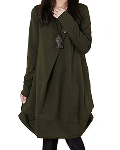 -. Title : [YBJ] レディース Aライン ワンピース チュニック 長袖 ゆったり 着やせ チュニック 膝丈 4色展開(黒、灰、緑、茶)