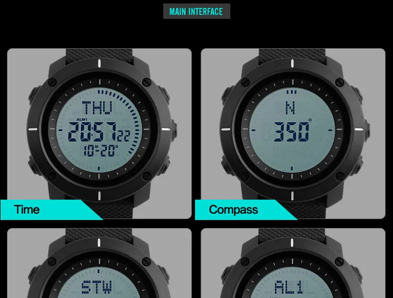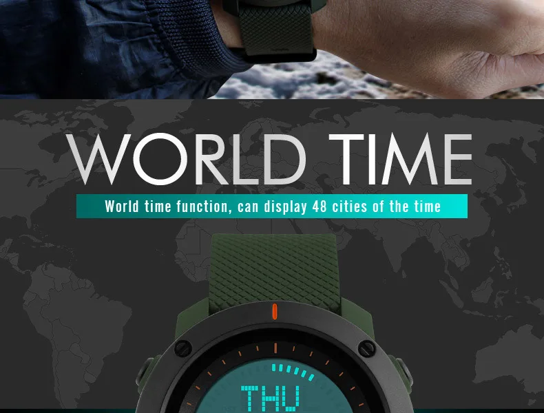 Feature:Alarm,Back Light,Water Resistant,Shock Resistant,Stop Watch,Complete Calendar,Multiple Time Zone,Week Display,Compass