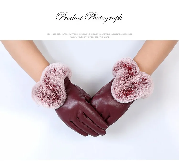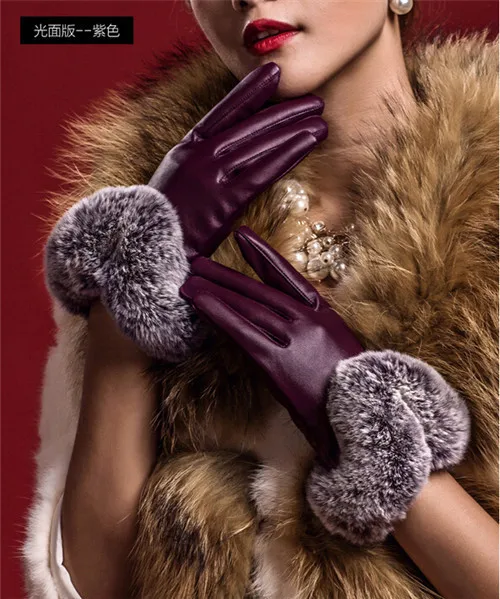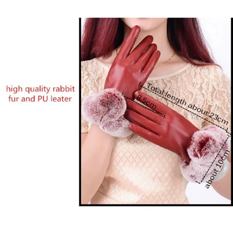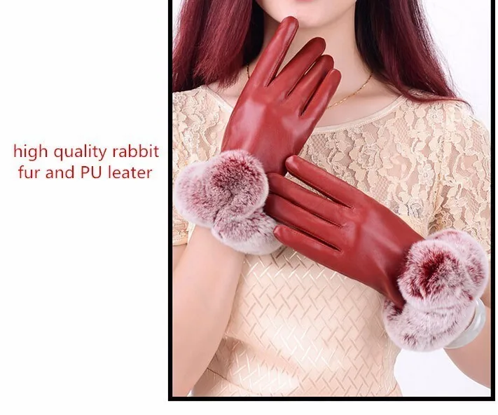 Leather Material:PU leather and fur winter gloves