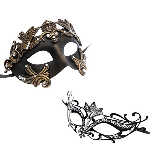 -. Title : Roman Greek Emperor Masquerade Venetian Mask Black Dark Gold Series Couple Mask Sets