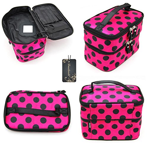 -. Brand : Donalworld -. ClothingSize : M -. Department : womens -. Feature : Material: Polyester / Comfort and Durable for Daily Use / Multi Compartment Toiletry Organizer / Great for travel or display on your home dresser / Size:20cm*11cm*13cm(L*H*W);please allow 1-3 CM size difference and slightly color difference -. ProductGroup : Apparel -. ProductTypeName : LAGE -. Size : M -. Title : Donalworld® Women Unique Dots Pattern Double Layer Cosmetic Bag Packing Organizer