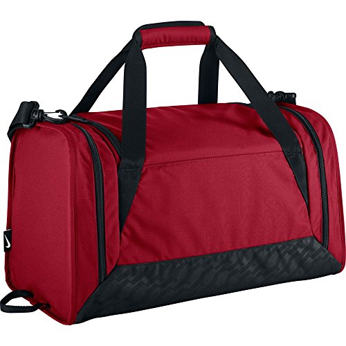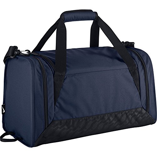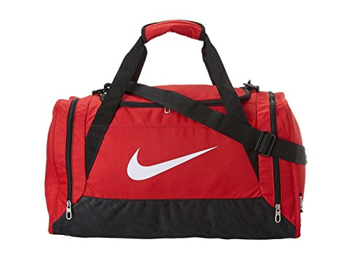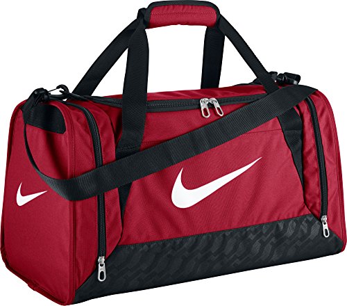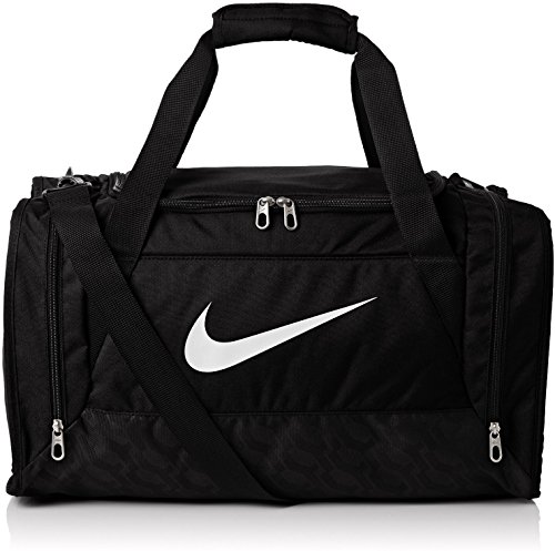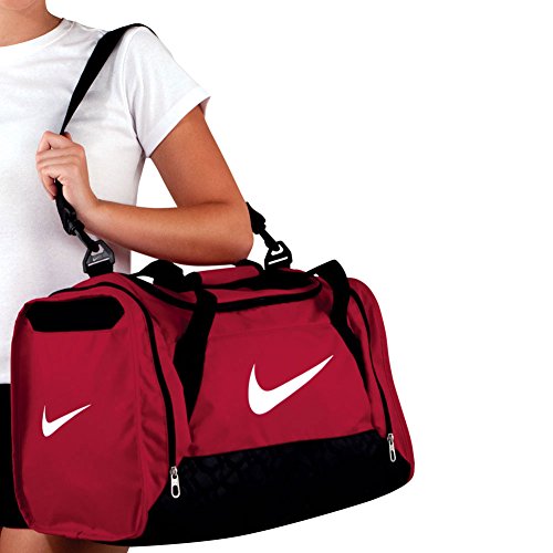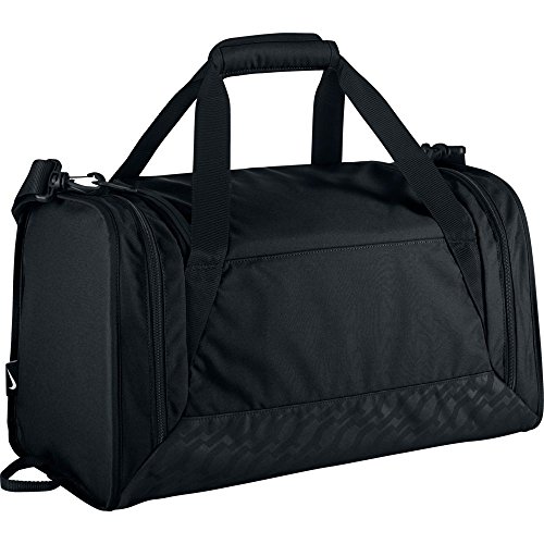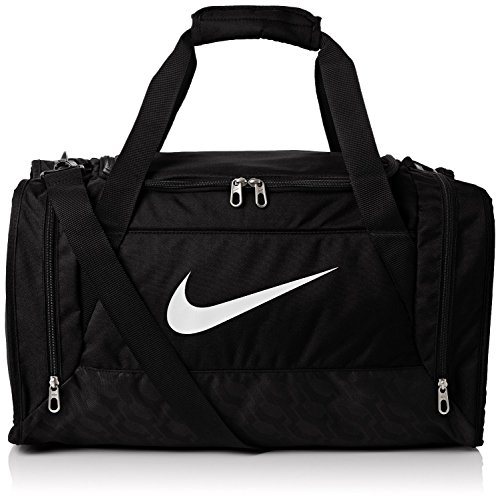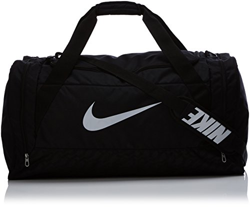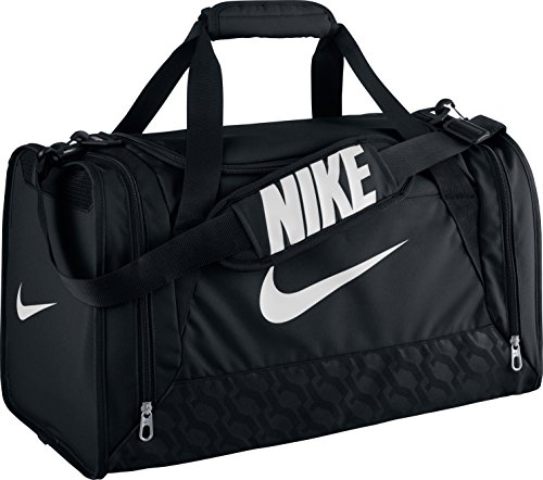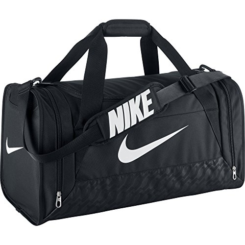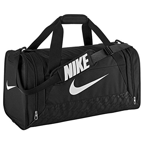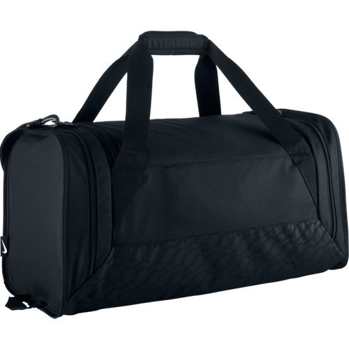 Product Description Head off to the gym or team practice with the NIKE Brasilia 6 medium duffel bag. Its roomy main compartment has a wide, U-shaped opening for easy access to your gear, while multiple zippered and VELCRO brand closure pockets keep small items organized and close at hand. One of the end pockets is ventilated for storage of shoes or wet items. Dimensions: L 24.5" x W 12" x H 13". Color: Black 0