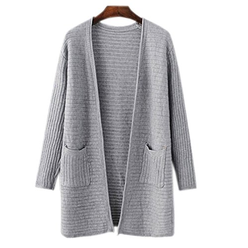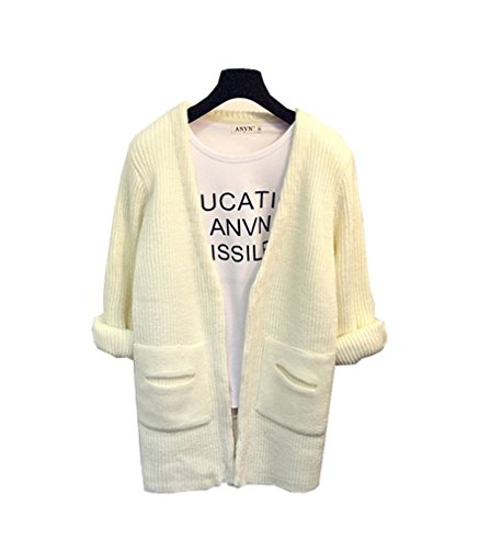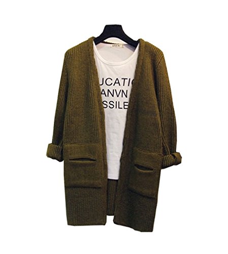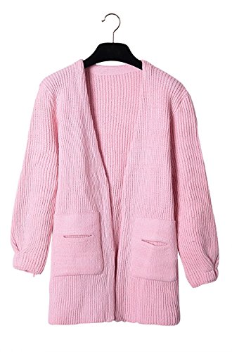 SAYM Women's Loose Pocket V-neck Sweater Cardigan Knit Top