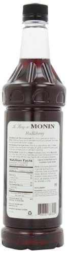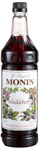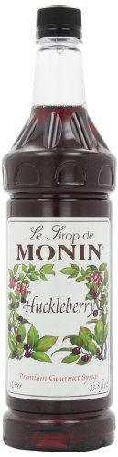 MONIN FLAVORED SYRUP, HUCKLEBERRY, 33.8-OUNCE PLASTIC BOTTLES (PACK OF 4)