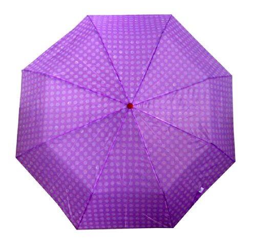 -. Brand : Elite America -. Color : purple -. Department : womens -. EAN : 0679981503246 -. Feature : compact, pocket umbrella. Folds small, opens big / folds into 9.5" long, Manually opens to 43" wide / so compact, you can take it with you everywhere -. Model : 5302 purple -. PackageQuantity : 1 -. ProductGroup : Apparel -. ProductTypeName : LAGE -. Size : opens to 43" -. Title : Compact Folding Polka Dot Umbrella -. UPC : 679981503246