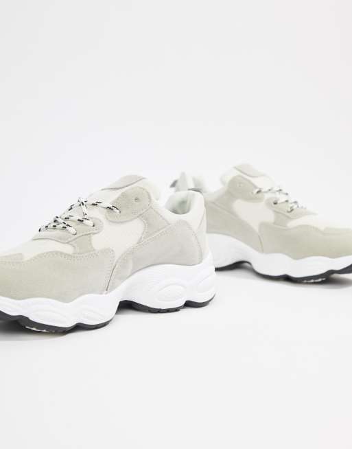 Public Desire Wolf white and gray mix chunky sneakers