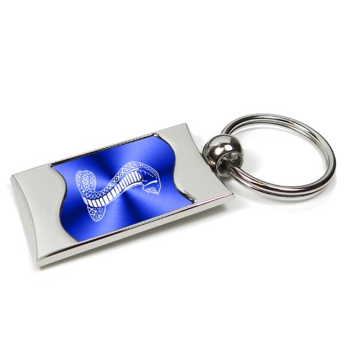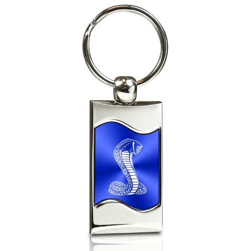 -. Title : Ford Mustang Shelby Cobra Blue Spun Brushed Metal Key Chain