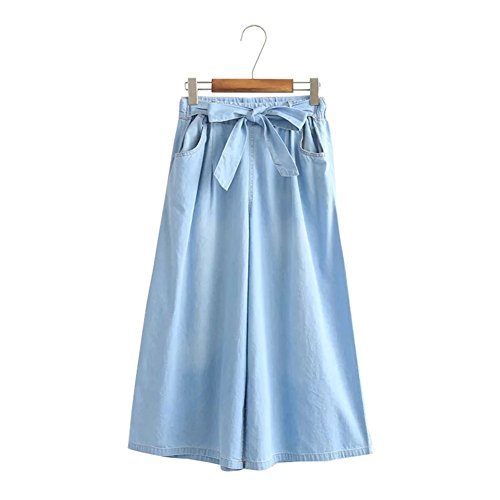 -. Feature : 素材:デニム / サイズ:ウェスト63-73cm ヒップ118cm 太もも37cm 裾幅72cm 着丈80cm / トレンドのガウチョパンツでスカートに見たいに美しいシルエットを演出します。 / ウェストゴムとリボン付きでおしゃれで履き心地抜群です。 / ゆったりしたデザインで夏にも涼しくて体型カバー効果も期待できます。