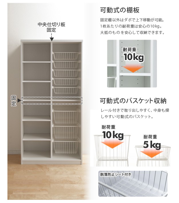 バスケット耐荷重:浅-5kg、深-10kg