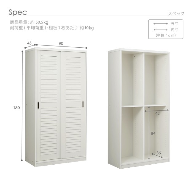 サイズ(cm):幅90x奥行45x高さ180cm・約50.5kg
