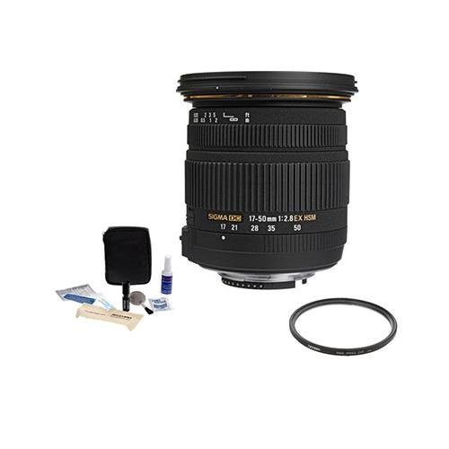 -. Feature : Sigma 17-50mm f/2.8 EX DC HSM Auto Focus Lens - Lens Hood - Front & Rear Lens Caps - Sigma 1 Year North and South America Limited Warranty (3 Year USA Extended Warranty for a Total of 4 Years from Date of Purchase) - Bundle Includes: - Tiffen 77mm UV Wide Angle Filter - Professional Lens Cleaning Kit / For use with smaller chip APS-c or 4/3 digital cameras only / HSM (Hyper-Sonic Motor) ensures a quiet & high-speed auto focus / FLD glass elements with performance equal to fluorite glass for compensate for color aberration / Ultra compact with overall length of just 3.6"