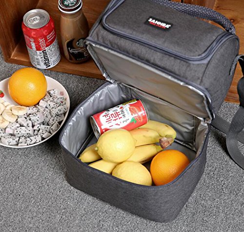 -. Feature : 【 MADE WITH UPGRADED MATERIALS】 Pro Made with high-durability 600D oxford polyester, can withstand 352.77oz. Non-toxic Interior insulatedX PEVA lining is safe and Eco-friendly, wipes, Escort your health, clean easily and more insulation / 【HIGH QUALITY CERTIFICATION】 The picnic package is certified by FDA without any harmful substances and can be a lasting protection of food fresh. Make your life more healthy every day / 【DESIGNED WITH ATTENTION TO DETAILS】 Insulated Lunch box with a soft pu handle strap and a detachable shoulder strap for easily carry. Upper compartment easy to access through front opening with a 2-way dual zipper closure / 【NSTRUCTIONS FOR USE】Two sections that keep cold and warm items separate. On top, a roomy pouch is great for chips, fruit, drinks snacks and cookies. Square bottom compartment used to carry your lunch, sandwich, salad and etc.This thermal tote is great for packing large amounts of food for go to school, work and picnic( H: 8.7 x 6.7 x 7.9 inches) / 【PROMISE】 If you are not 100% satisfied, we are happy to give you a refund or exchange, no hassles. Click "Add to Cart" and order yours now