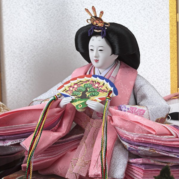・台座・屏風等には落ち着いた色目の雛人形セット。