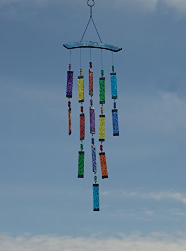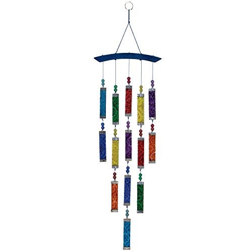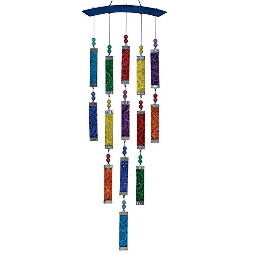 In the Breeze Item #7010 - Rainbow Textured Glass Mobile Wind Chime. This COLORFUL SUNCATCHER makes a unique outdoor decoration.