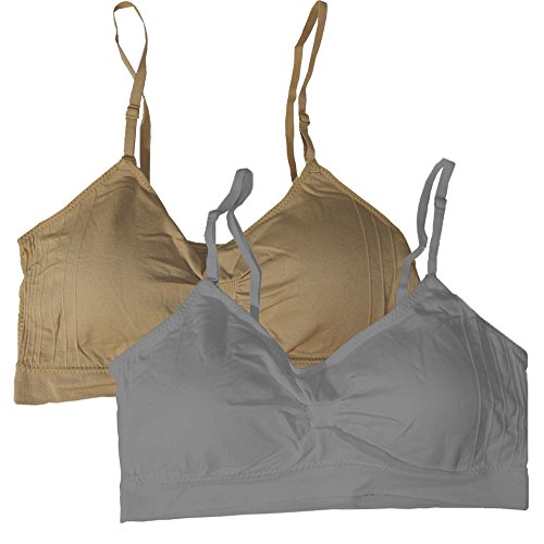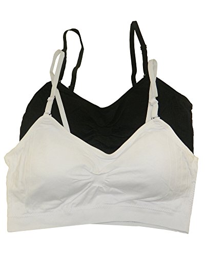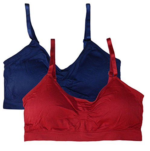 This strappy scoopneck bra is all about comfort! This bra features soft, stretchy cloth but includes a reinforced elastic-style center in order to find the perfect balance of support and forming to your personal shape. Elastic band hugs your ribs but doesn't dig in like a traditional bra band. For support and coverage without the discomforts of an underwire bra, this bra is perfect style for you! This product comes in a pack of two bras, each a different color.Feature