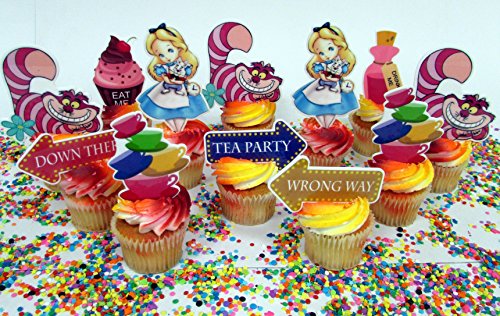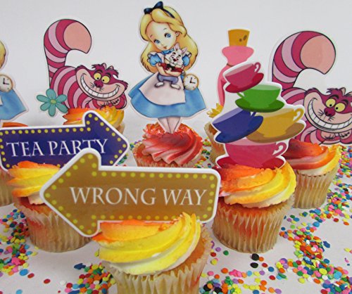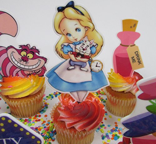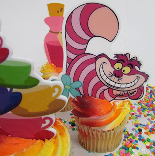 Alice in Wonderland Themed Birthday Cupcake Toppers Featuring Alice, Cheshire and More!