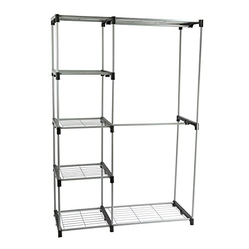 -. Feature : DURABLE & CONVENIENCE: Made by metal steel bar, and durable plastic support. This is perfect rack to organize your clothes! Have the flexibility to organize neatly folded clothes or hang clothes up with a clothes hanger! / FLEXIBILITY & CREATIVITY: Easy to assembly without any tools. Center rod can be removed for longer clothing such as dresses for maximum versatility. / EXTRA CLOSET SPACE SAVER: 4 layered smaller shelves for folded clothes or other items such as purses, bags, or organizer boxes. 2 sections to hang clothes, jackets, T-shirt. (An Upper & Lower Section) / LIGHT WEIGHT & EASY TO MOVE: Move around from bedroom to garage. Light weight cloth rack easily to move around. / GUARANTEE: Smart-Home products guarantee defect free/ damaged & come with 1 Year warranty. Message us if you have any problems