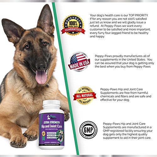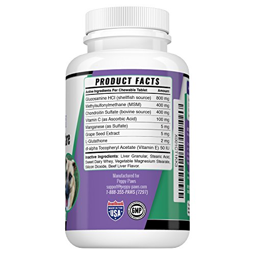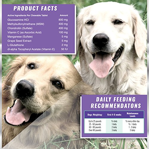 PUT THE PEP BACK IN YOUR DOG'S STEP OR YOUR MONEY BACK: Our superior joint supplements for dogs are enriched with MSM, and Glucosamine Chondroitin for dogs, the best ingredients known to help revitalize joints, reduce inflammation, and improve mobility.