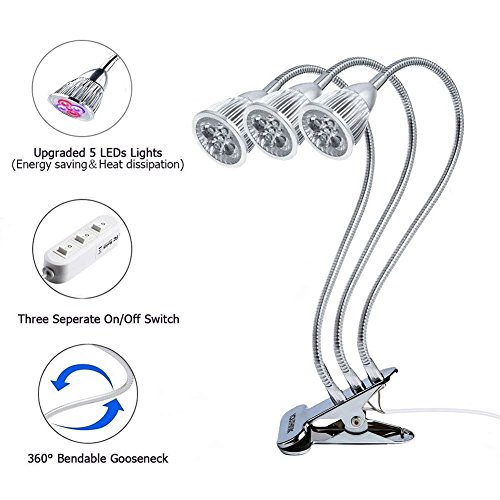 -. Title : Three Heads Led Grow Light, Leagway 15W Triple Head Desk Clip Plant Grow Lamp with 360 Degree Flexible Gooseneck and Triple on/off Switch for Indoor Plants Hydroponics Greenhouse Garden Home Office