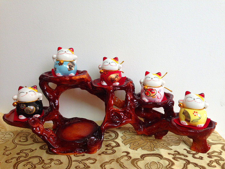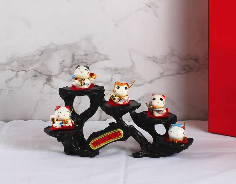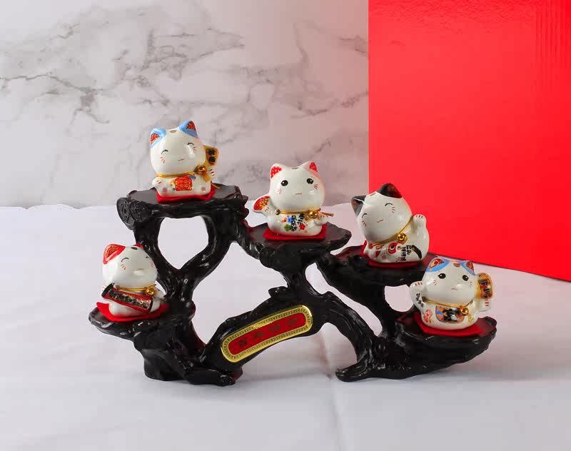 寓意:架子是摇钱树,猫咪是招财猫。五只招财猫代表五福临门。u0026nbsp;u0026nbsp;