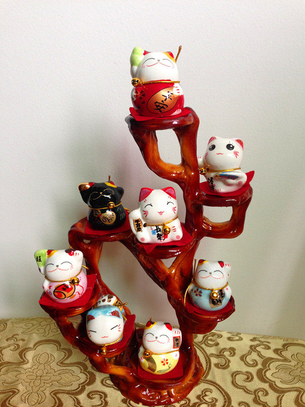 寓意:架子是摇钱树,猫咪是招财猫,八只招财猫代表八方招财。