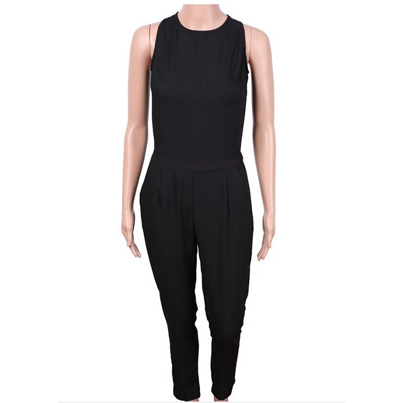 key:black sleeveless long jumpsuits