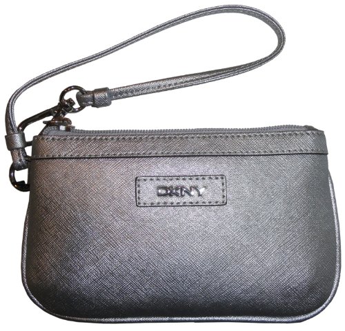 DKNY Women's Saffiano Leather Wristlet with Logo Plaque Silver