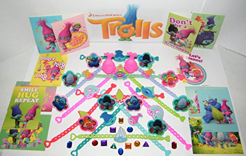 -. Feature : This fun set of 48 includes Troll Movie Bracelets, Rings, Stickers and Troll "Jewels!" / These nicely detailed soft plastic bracelets are 7.5 inches and the jewels are.5 inches. / This set features popular Trolls characters and are great for any Troll fan! / These are nicely shipped in plastic as pictured. / They are for children and adults 4 and older and make a fun gift idea or neat party favor!