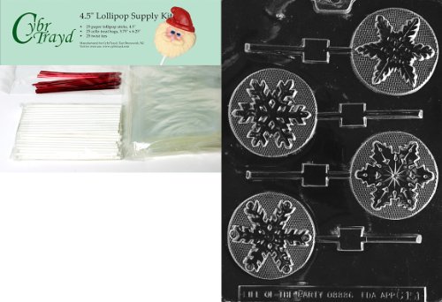 Cybrtrayd 45stK25R-C151 Assorted Snowflakes Lolly Christmas Chocolate Mold with Lollipop Kit