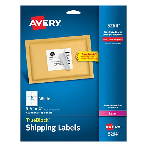 Avery White Shipping Labels for Laser Printers with TrueBlock(TM) Technology, 3-1/3 inches x 4 inches, 6 Labels, 25 Sheets, (5264)